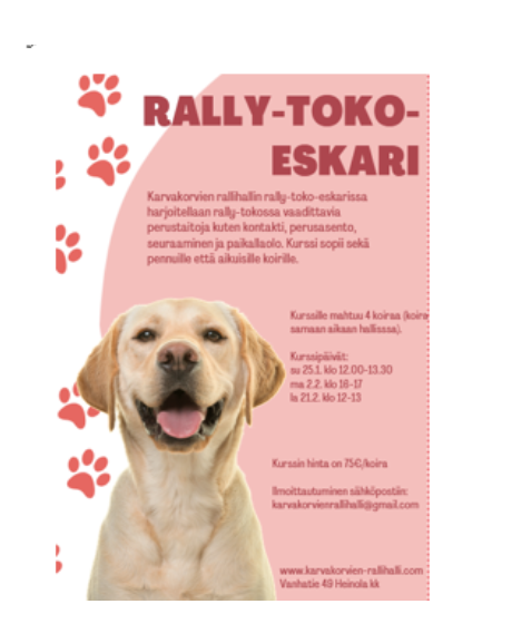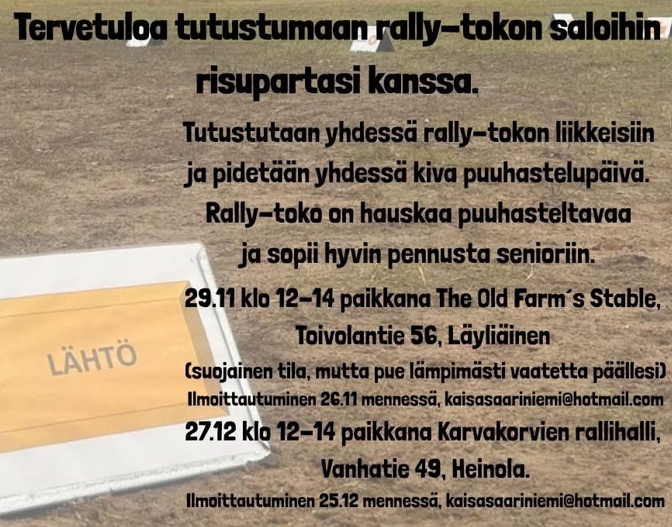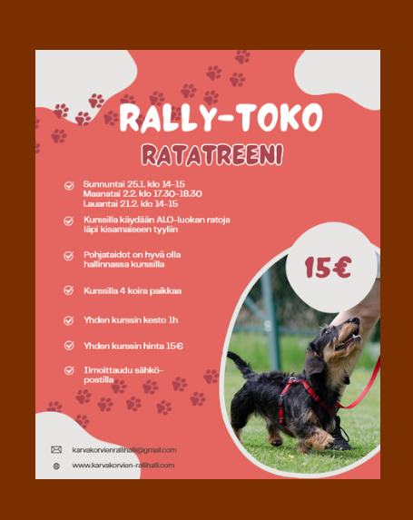 Mukaan pääsee rodusta riippumatta. Ilmoittautuminen tapahtuu sähköpostilla karvakorvienrallihalli@gmail.com. Tervetuloa leikkimään!