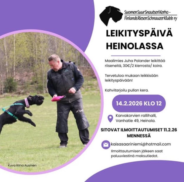 kouluttanut kymmeniä koirakoita MM-kisoihin. Esan leikitykset jatkuvat syksyllä 2025 tiistaisin ja perjantaisin klo 14 alkaen seuraavina päivinä: