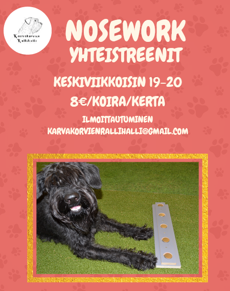 Helatorstaina 29.5.2025 klo 10-16 voit käydä koirasi kanssa testaamassa nenän toimintaa. Hallille rakennetaan erilaisia hajutyöskentelytehtäviä. Löydät sisään tullessasi kartan, johon en merkitty sekä rata että "ratkaisu". Mukavaa nosetusta!